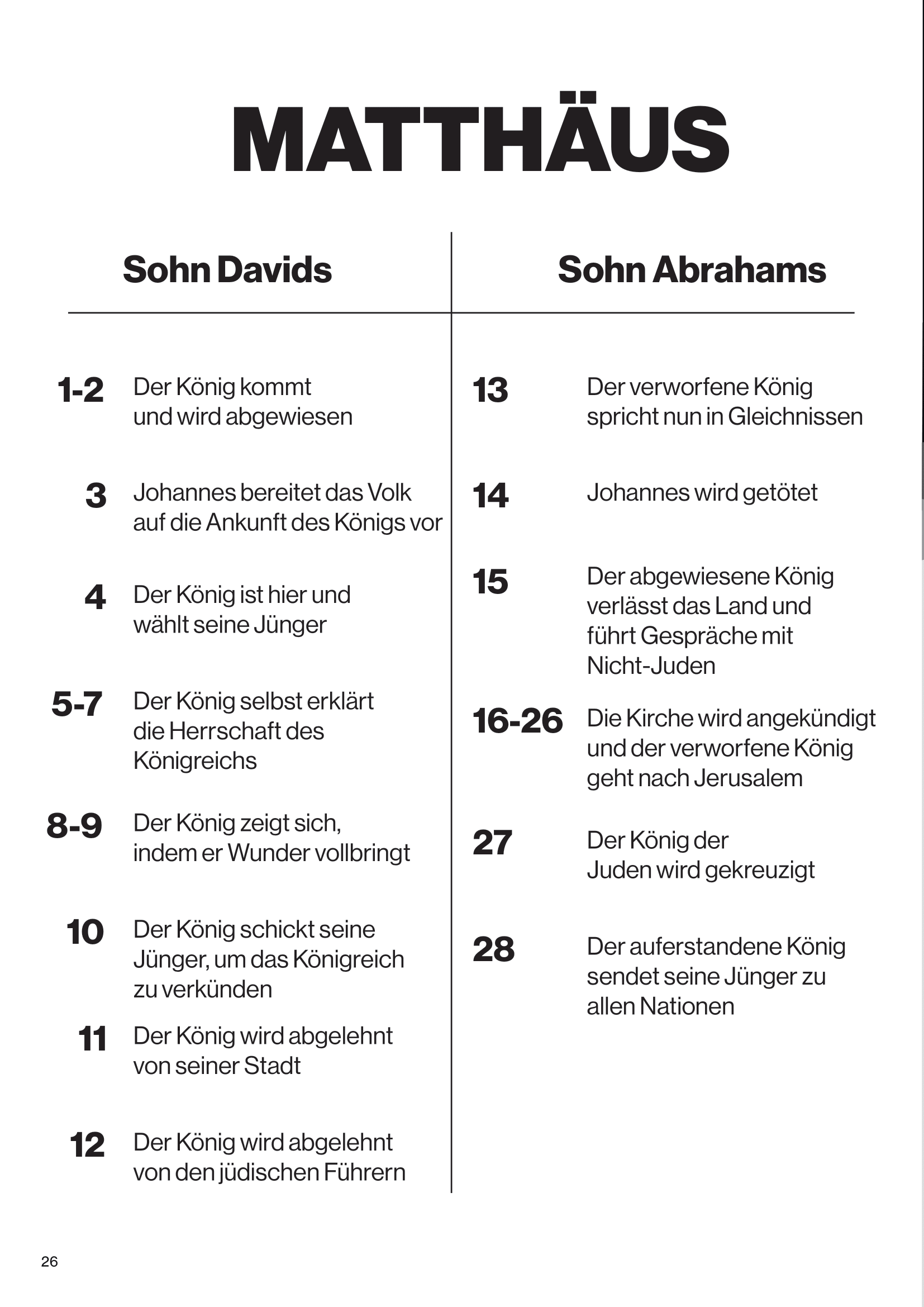 Dieses digitale Workbook ist mit unserer Videoserie zum Matthäusevangelium verknüpft. Es ist ein Überblick – aber nicht oberflächlich. Perfekt für dein persönliches Bibelstudium oder für Gruppen.
