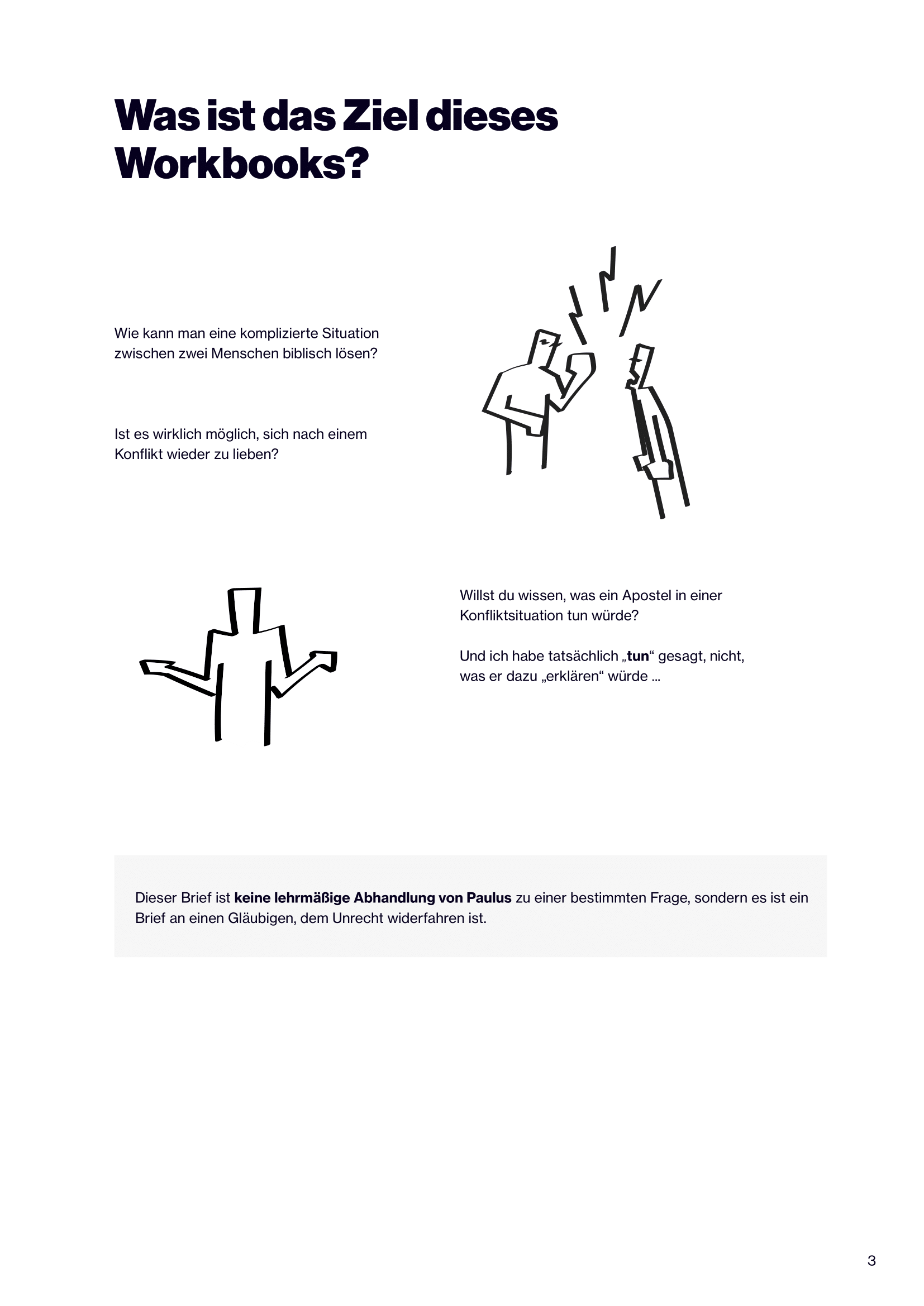 Dieses digitale Workbook ist mit unserer Videoserie zum Philemonbrief verknüpft. Es zeigt dir, wie das Evangelium echte Konflikte verändert – wie Vergebung möglich wird, Beziehungen erneuert werden und warum Liebe manchmal mutige Schritte erfordert.