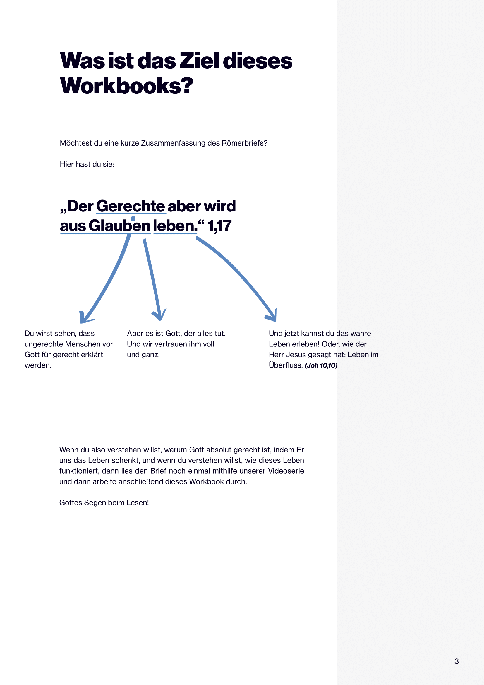 Das digitale Workbook ist mit unserer älteren Videoserie zum Römerbrief verknüpft. Es ist ein Überblick – aber nicht oberflächlich. Perfekt für dein persönliches Bibelstudium oder für Gruppen.
